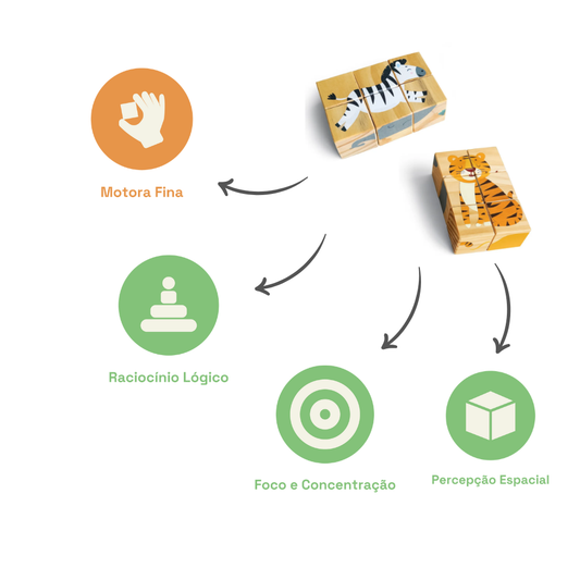 Quebra-Cabeças 12 Cubos Baby Animais da Selva