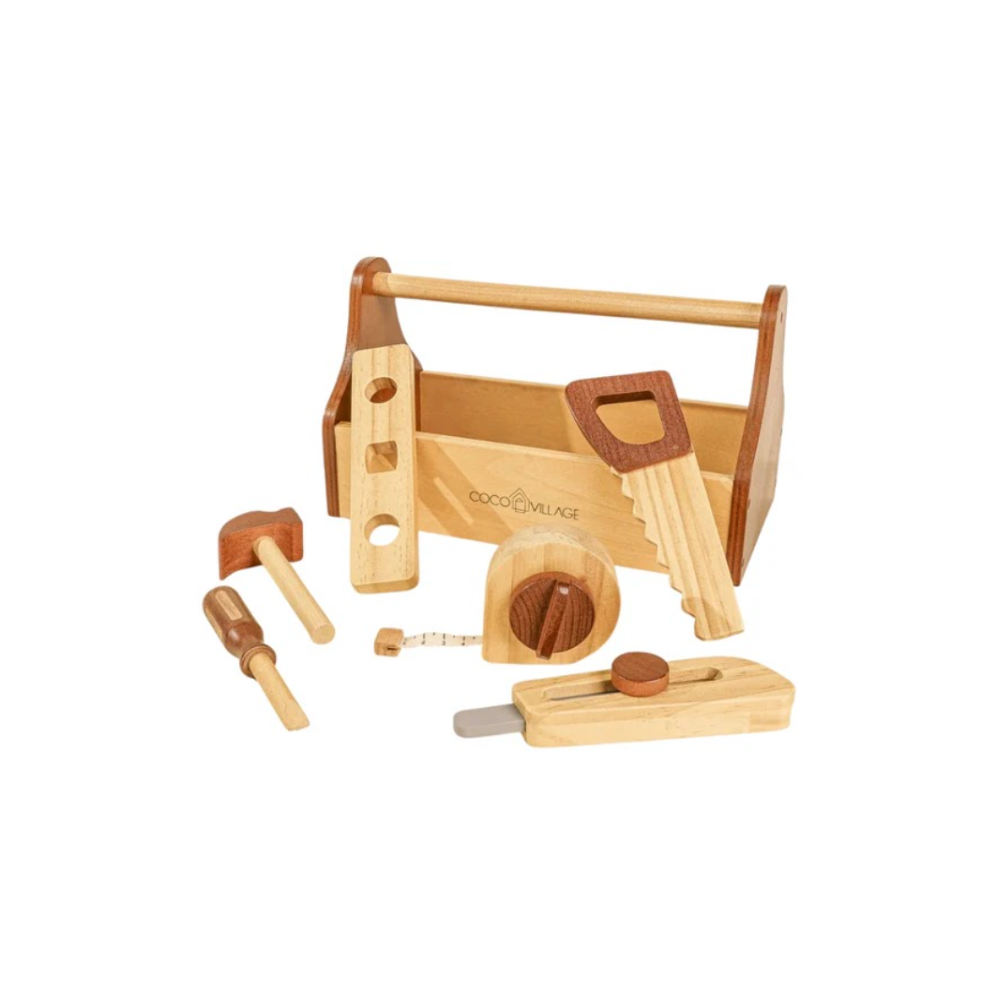 Composto por uma variedade de ferramentas de brinquedo, como chave de fenda, serrote, martelo, trena e estilete, as possibilidades são infinitas.