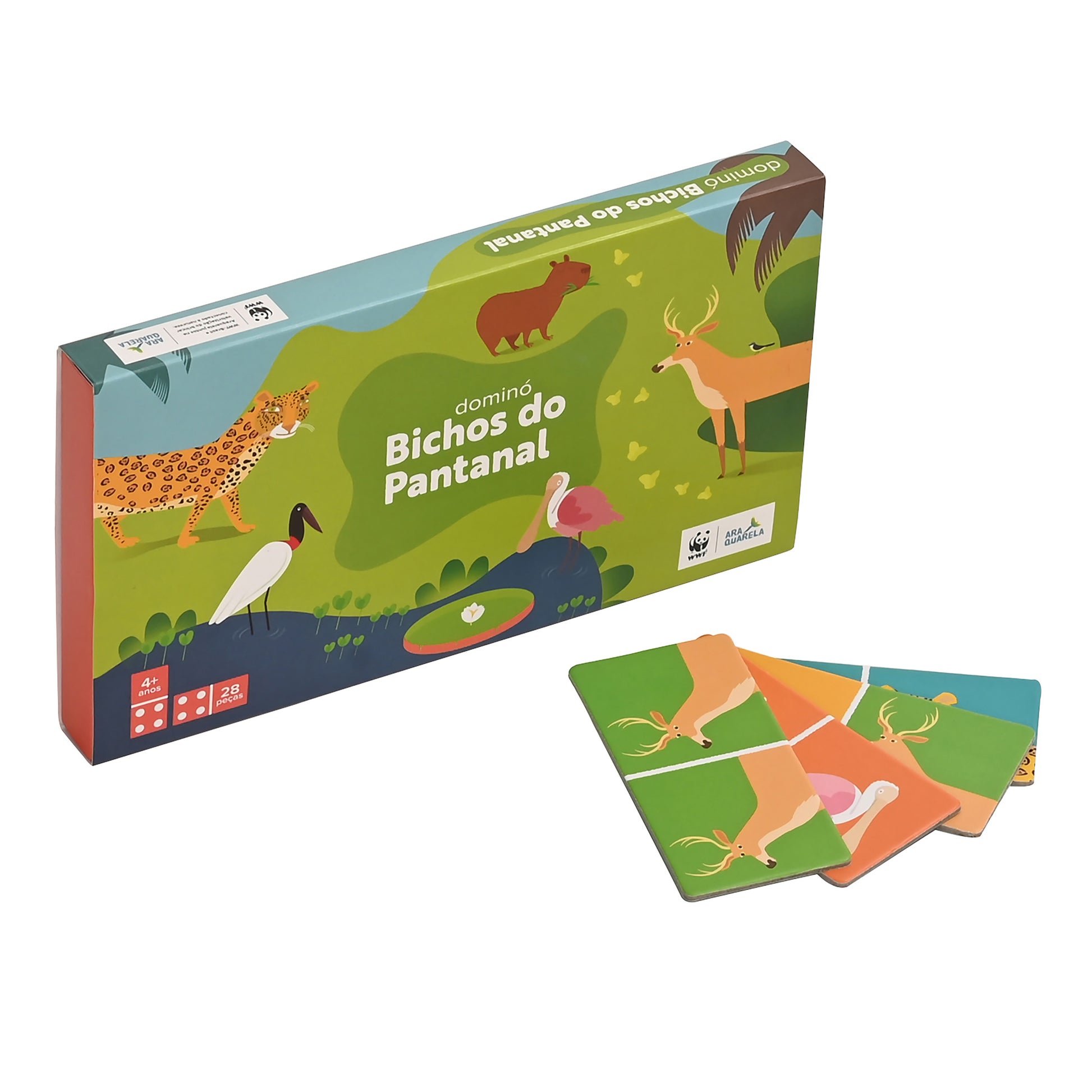 Dominó Bichos do Pantanal – Araquarela é um jogo educativo e encantador que apresenta às crianças a fascinante fauna do Pantanal, um dos biomas mais ricos do Brasil.