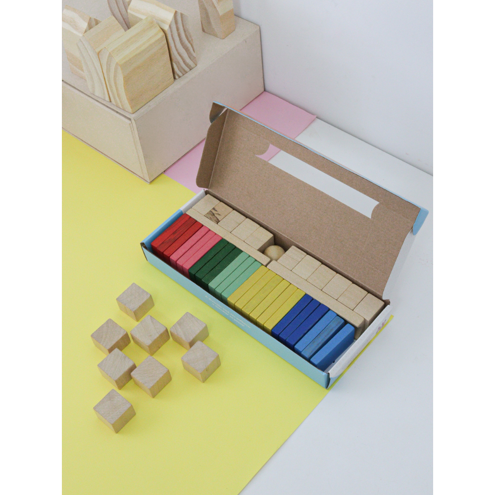 38 peças em madeira maciça com acabamento seguro e resistente.