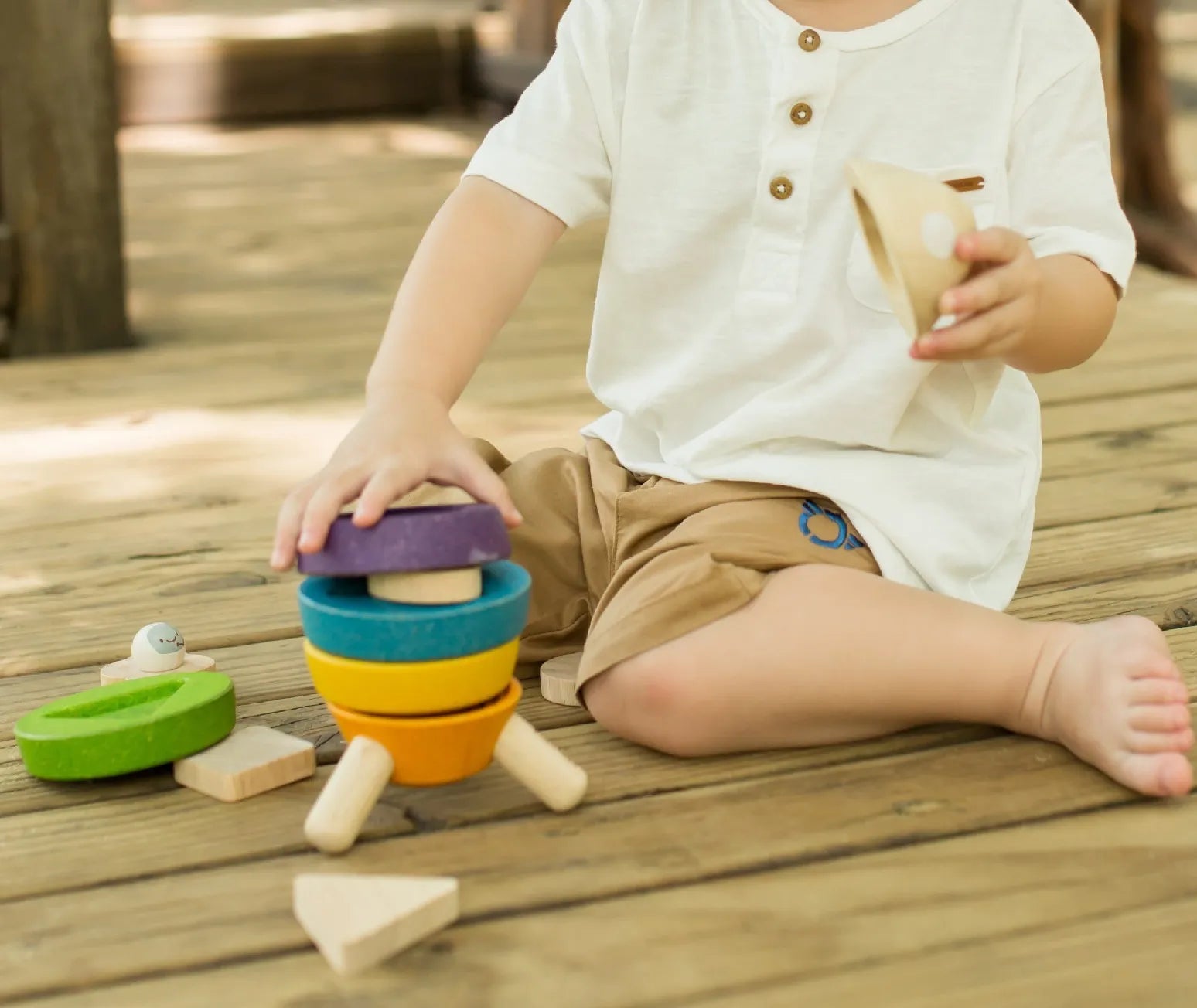 Material: Feito de madeira sustentável, proveniente das seringueiras de reflorestamento que não produzem mais látex; Pigmentos orgânicos, corantes à base de água e cola livre de formol, em busca da proteção das nossas crianças e o meio ambiente.