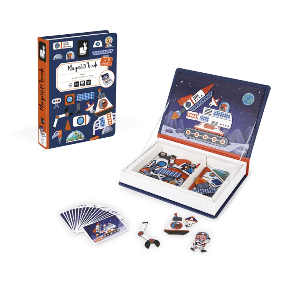 O Livro Magnético Viagem ao Cosmos é um convite à imaginação espacial. Com peças magnéticas e cartas de referência, ele permite que as crianças criem infinitas combinações do universo — montando foguetes, astronautas, estações espaciais e cenários cósmicos, seja seguindo os modelos ou inventando suas próprias aventuras interplanetárias.