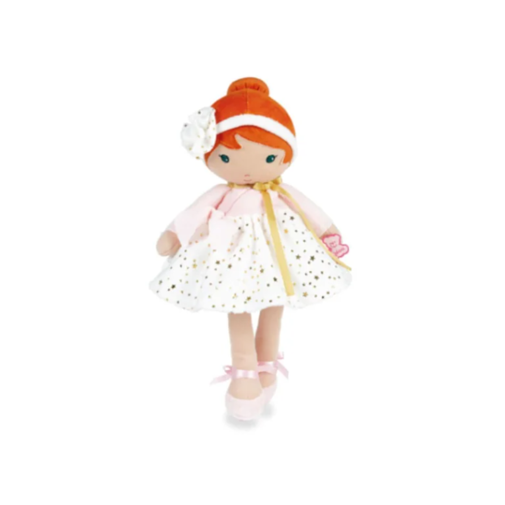 Seu vestido em tons suaves e detalhes dourados refletem todo o cuidado e o carinho da marca Kaloo, tornando-a um presente cheio de afeto e significado.