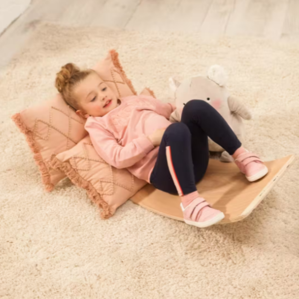 Em um primeiro momento, a criança utilizará a prancha de equilíbrio como uma ferramenta valiosa para aprimorar tanto sua habilidade motora quanto sua capacidade imaginativa. Mais tarde, à medida que as atividades recreativas se tornam uma parte essencial do seu processo de aprendizado nesta fase, a prancha se converterá em um ponto de partida para uma série de aventuras, estimulando assim sua criatividade. Além disso, ela também pode ser utilizada para momentos de relaxamento, bastando adicionar uma manta, almofada ou até mesmo alguns brinquedos.