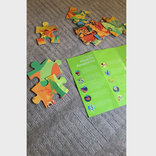 Com ilustração encantadora e colorida, ele apresenta uma visão rica da biodiversidade da Amazônia, despertando o interesse pela natureza, pela cultura e pela preservação do meio ambiente. Acompanha encarte bilíngue (português/inglês) com informações sobre a floresta e seus habitantes – uma oportunidade de aprendizado que vai além da brincadeira.