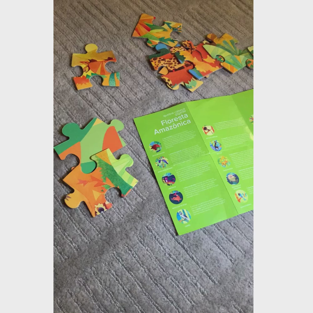Quebra-Cabeça Floresta Amazônica – Araquarela é um quebra-cabeça gigante com 48 peças grandes e resistentes, ideal para mãos pequenas e cheias de curiosidade.