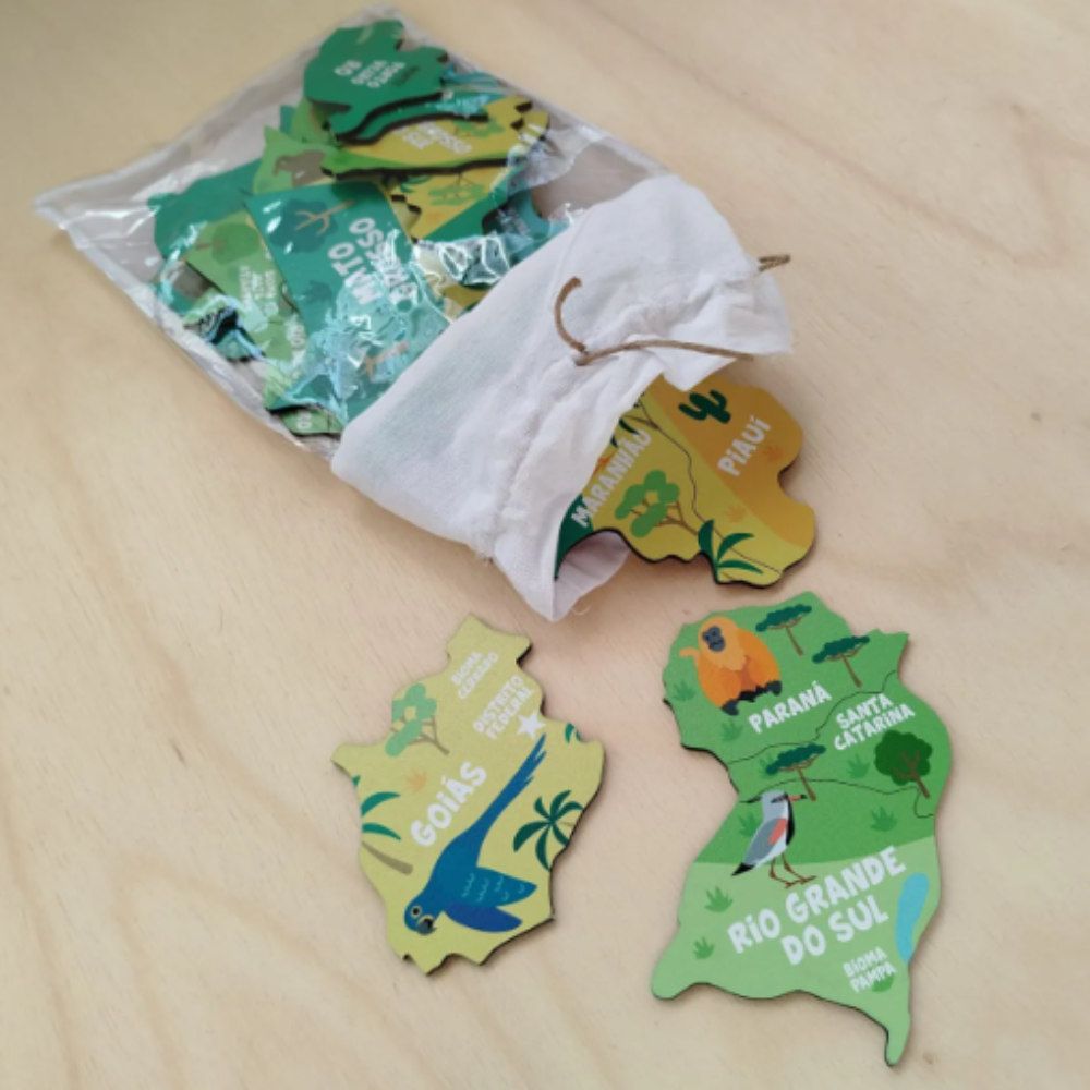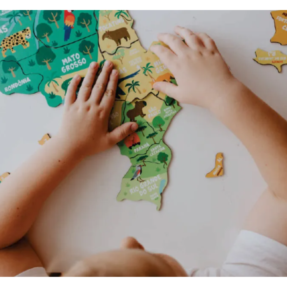 O Quebra-Cabeça Mapa do Brasil da NewArt é feito em madeira de reflorestamento e traz as 26 peças dos estados brasileiros para montar e explorar o país de forma lúdica. No verso de cada peça, estão impressas as capitais, siglas e regiões, tornando a brincadeira ainda mais completa e educativa.