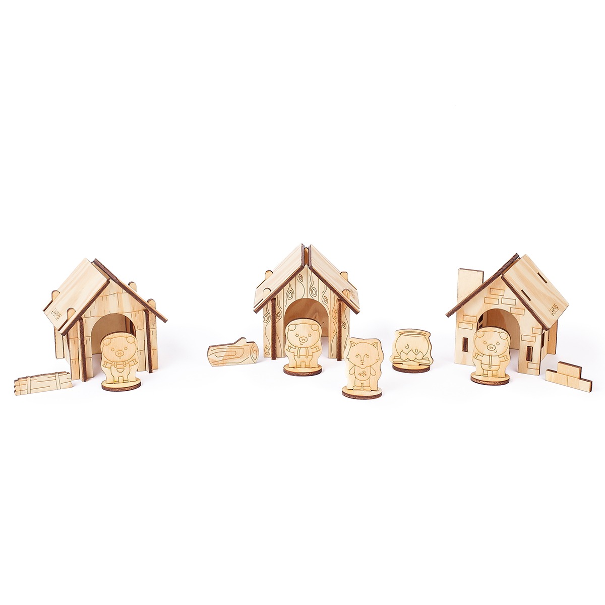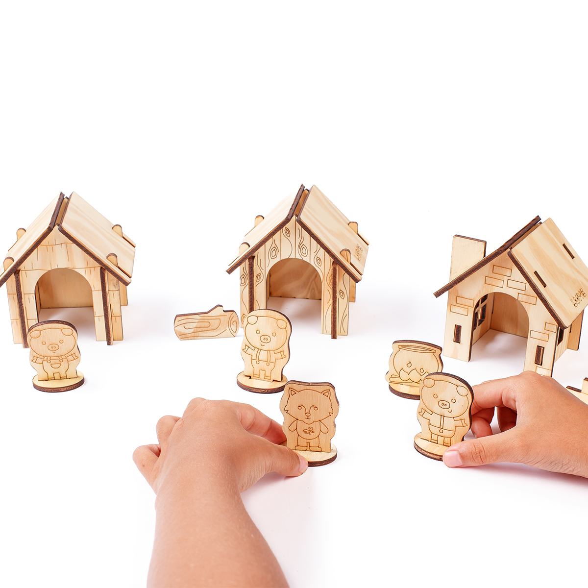 A Vila dos 3 Porquinhos permite que as crianças montem, pintem e brinquem com as casinhas e personagens do clássico conto. Um brinquedo interativo que estimula coordenação motora fina, criatividade e raciocínio narrativo, enquanto os pequenos dão vida à história com peças de madeira resistentes e fáceis de manusear.
